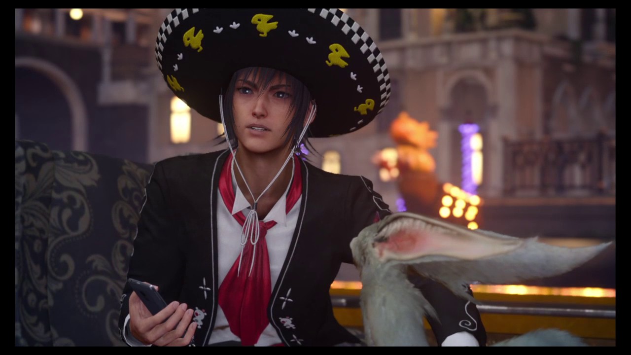 "How regrettable are we talking?" he had to wonder, giving her a suspicious side-eye before smirking and thumbing through his phone again. "On a scale of....Noctis in a chocobo hat," he turned the phone to show another picture, "oooor...." Scroll scroll scroll, "Noctis in this one?"
